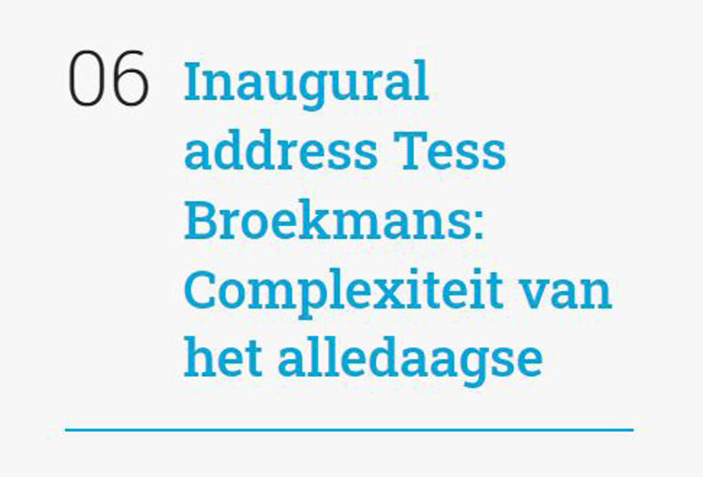 On 6 September, professor Tess Broekmans (Urbanism) gives her inaugural address ‘Complexiteit van het alledaagse’ (‘The complexity of the everyday’).